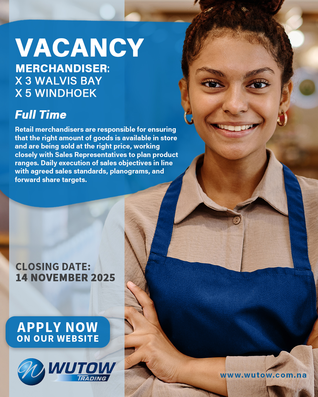 To apply for this job email your details to recruitment@wutow.com.na